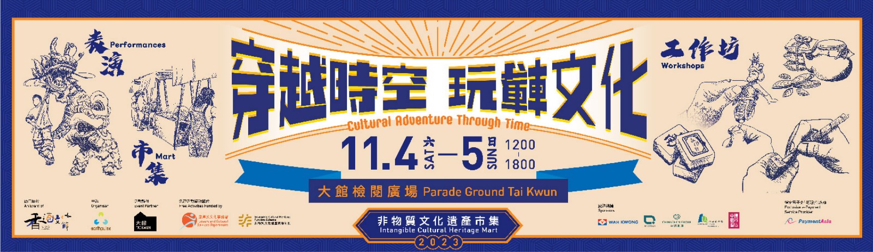 Supported by Intangible Cultural Heritage Funding Scheme with free performances and workshops, Intangible Cultural Heritage Mart 2023 is held in the form of carnival market from 12nn to 6pm, allowing visitors to experience unique local culture in an interesting way. From celebratory rituals to performing arts, traditional delicacies to daily lives, visitors will be introduced to the unique culture that has already been included in ICH Inventory of Hong Kong through interactive game booths, workshops and performances.